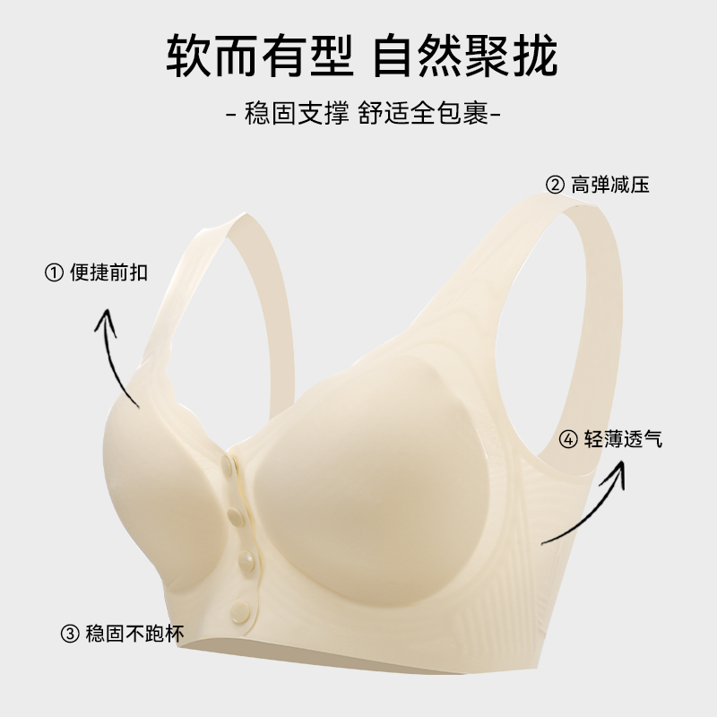 古今前扣文胸夏季薄款内衣女大胸显小无痕开扣聚拢软支撑透气胸罩