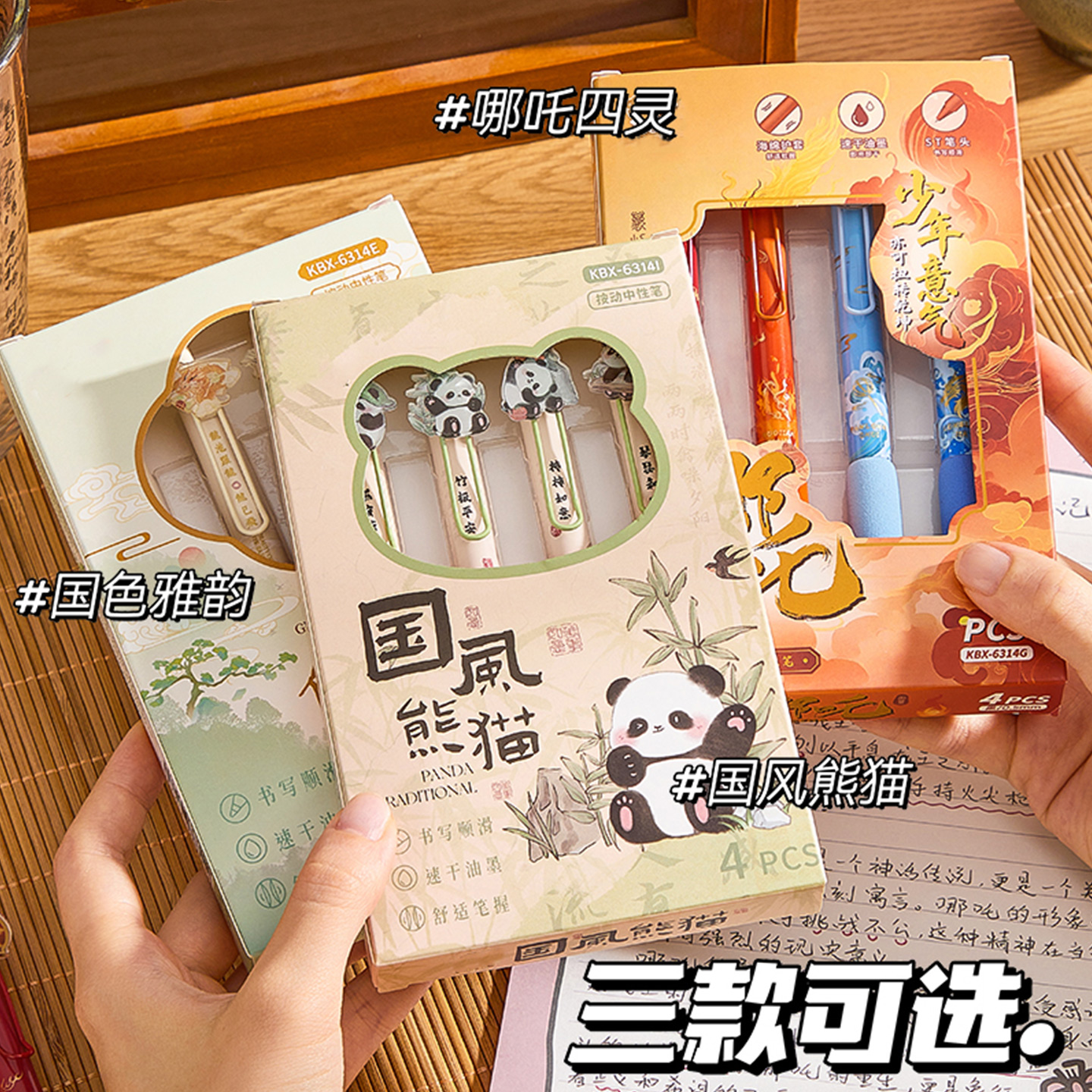 国色雅韵按动中性笔速干顺滑刷题笔ST笔尖0.5初中生专用黑笔ins风女生好看的高颜值软握水笔碳素签字笔圆珠笔