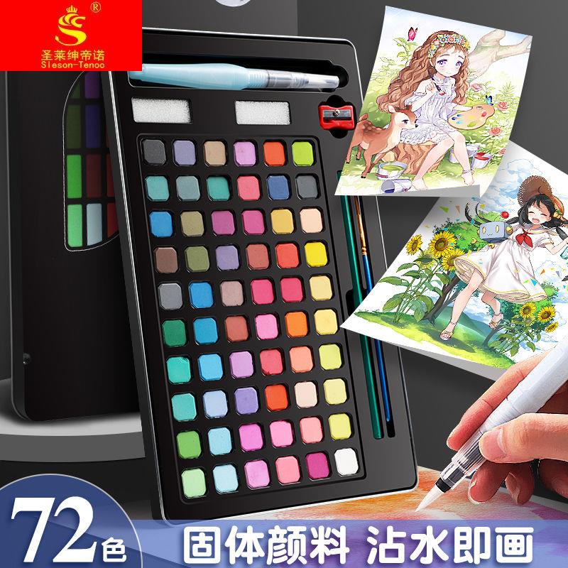 极速72色固体水彩颜料可水洗学生全套美K术学习用品水彩画工具铁