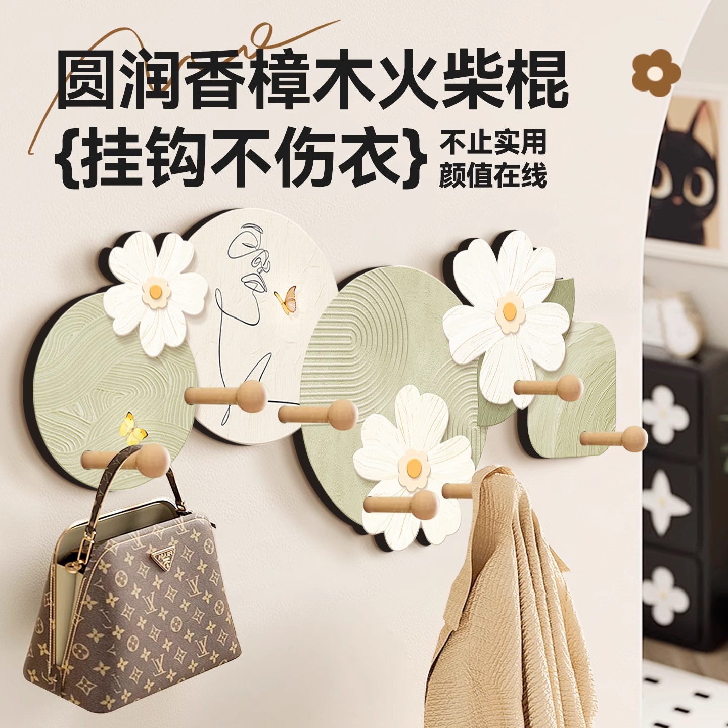 花开半夏卧室衣帽间家用玄关桌面装饰画洞洞板挂衣架客厅入户收纳