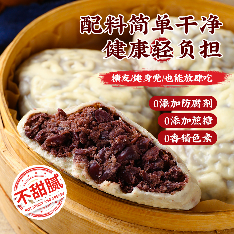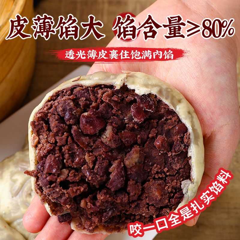 红豆包薄皮红豆馒头纸皮豆沙包馍馍饼枣泥馅包子老式手工面点早餐