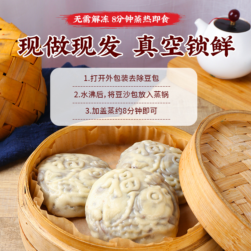 【拍6袋75元起】陶陶居豆沙核桃包子馒头虾饺点心速食早餐半成品