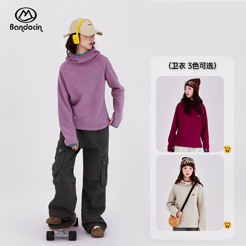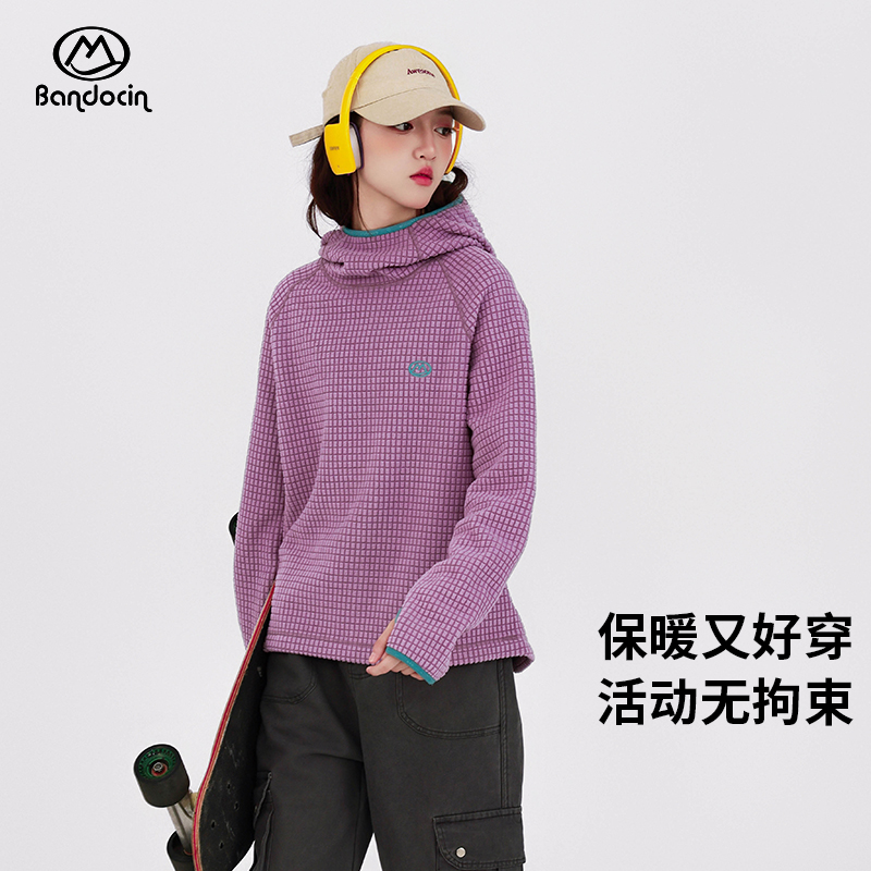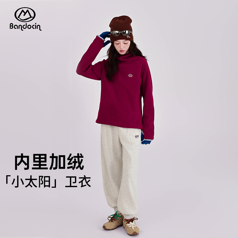 半度闲女童加绒华夫格卫衣洋气秋冬装25新款女孩冬季加厚运动上衣