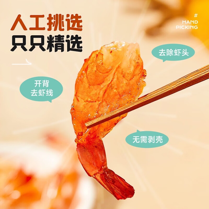 渔寻季开袋即食烤虾低脂孕妇休闲零食虾干海鲜干货250g烤对虾大号