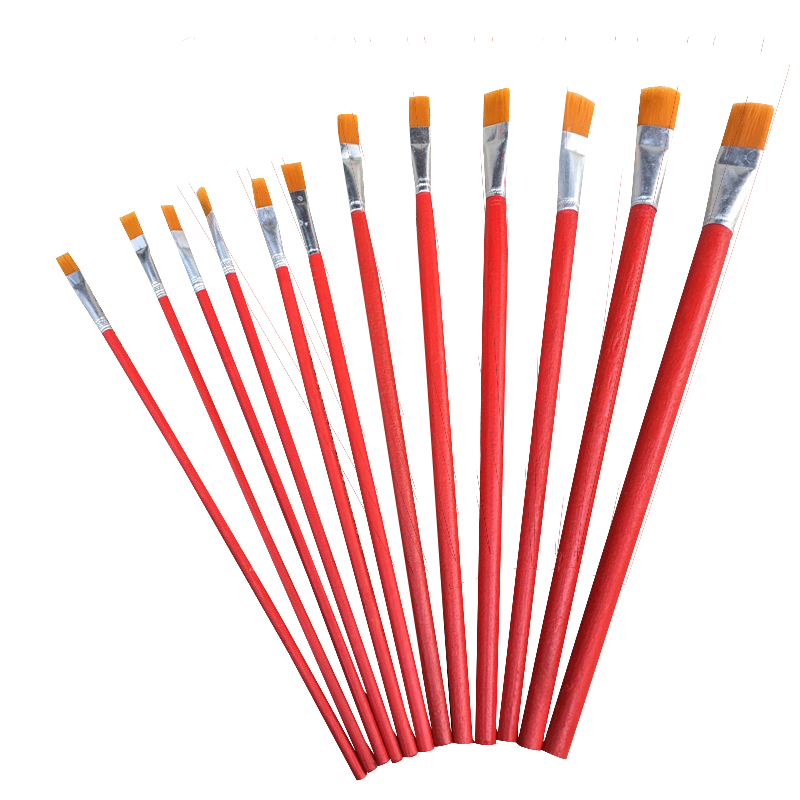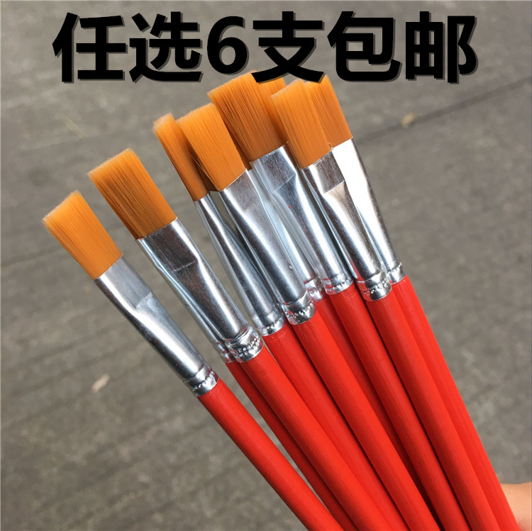 红杆尼龙油画笔水彩笔扁平头尼龙毛刷1-12号多种型号学生美术色彩笔刷