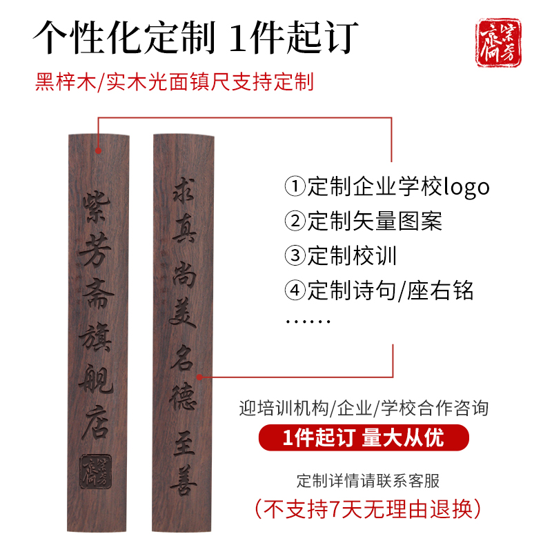 紫芳斋黑梓木镇尺实木镇尺一对30cm毛笔字压条原木书法镇尺学生初学者小号压尺文房四宝压纸镇尺清仓镇尺镇纸