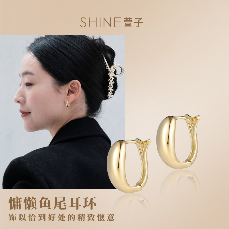SHINE萱子饰品慵懒周末系列金色耳环小众耳圈设计感生日礼物