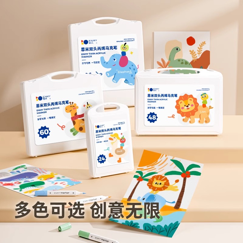 ENMY恩米双头丙烯马克笔小学生专用软头幼儿园美术课手绘画画可洗水彩笔速干不透色可叠色不晕染80色60色画笔