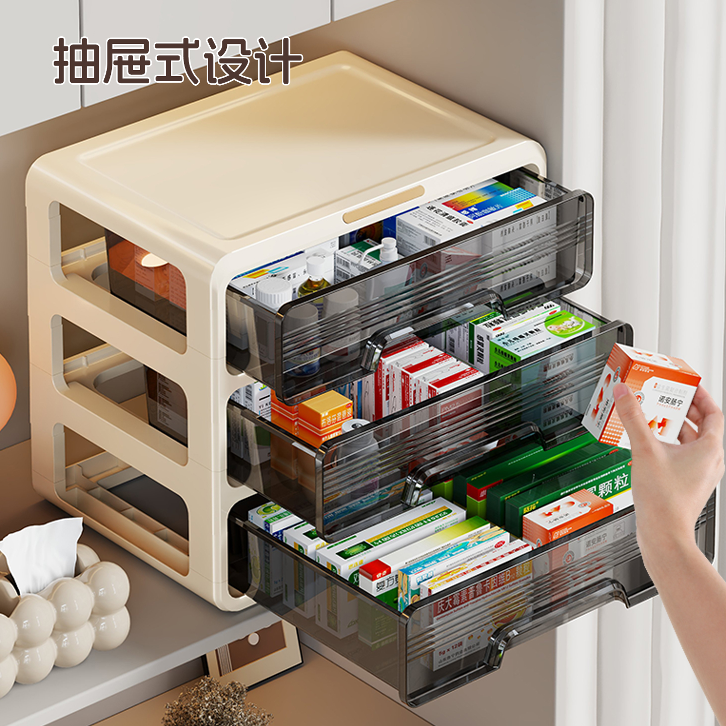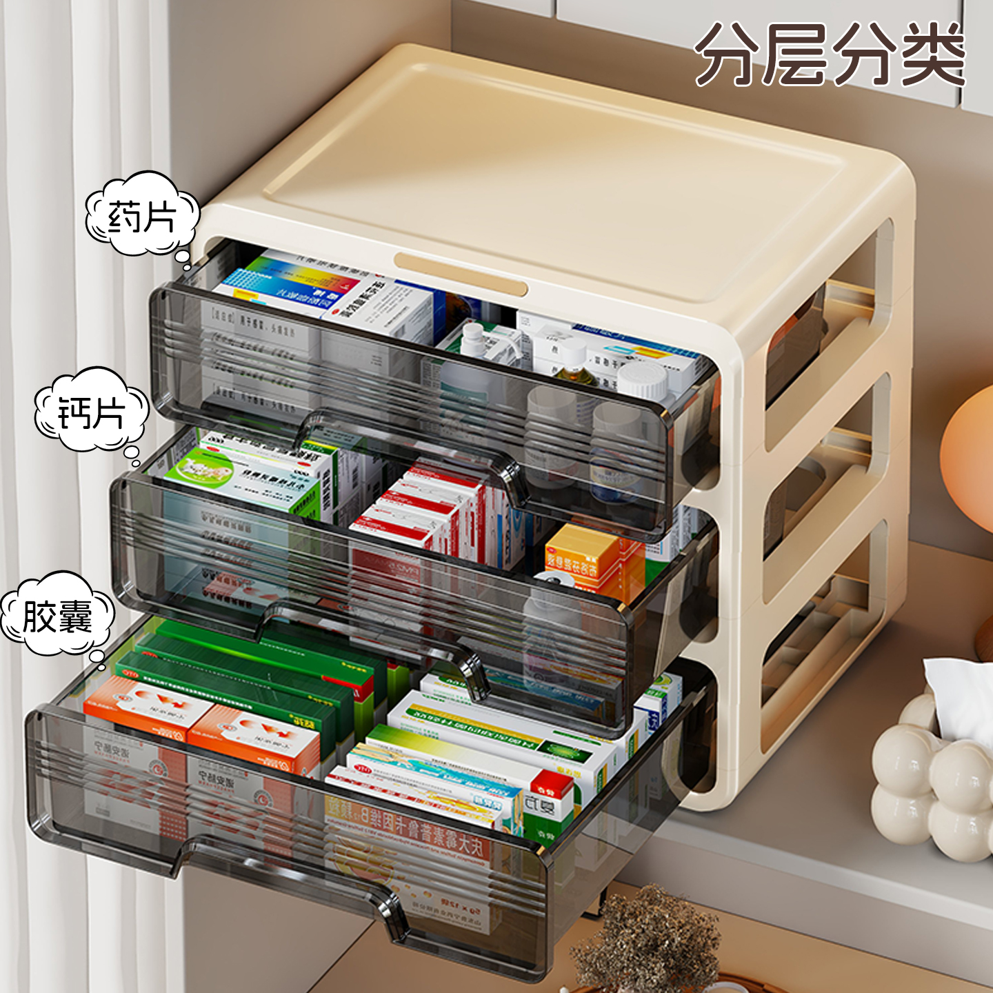 医药箱家庭装家用分类层透明大容量抽屉式医疗包放药物品收纳盒柜