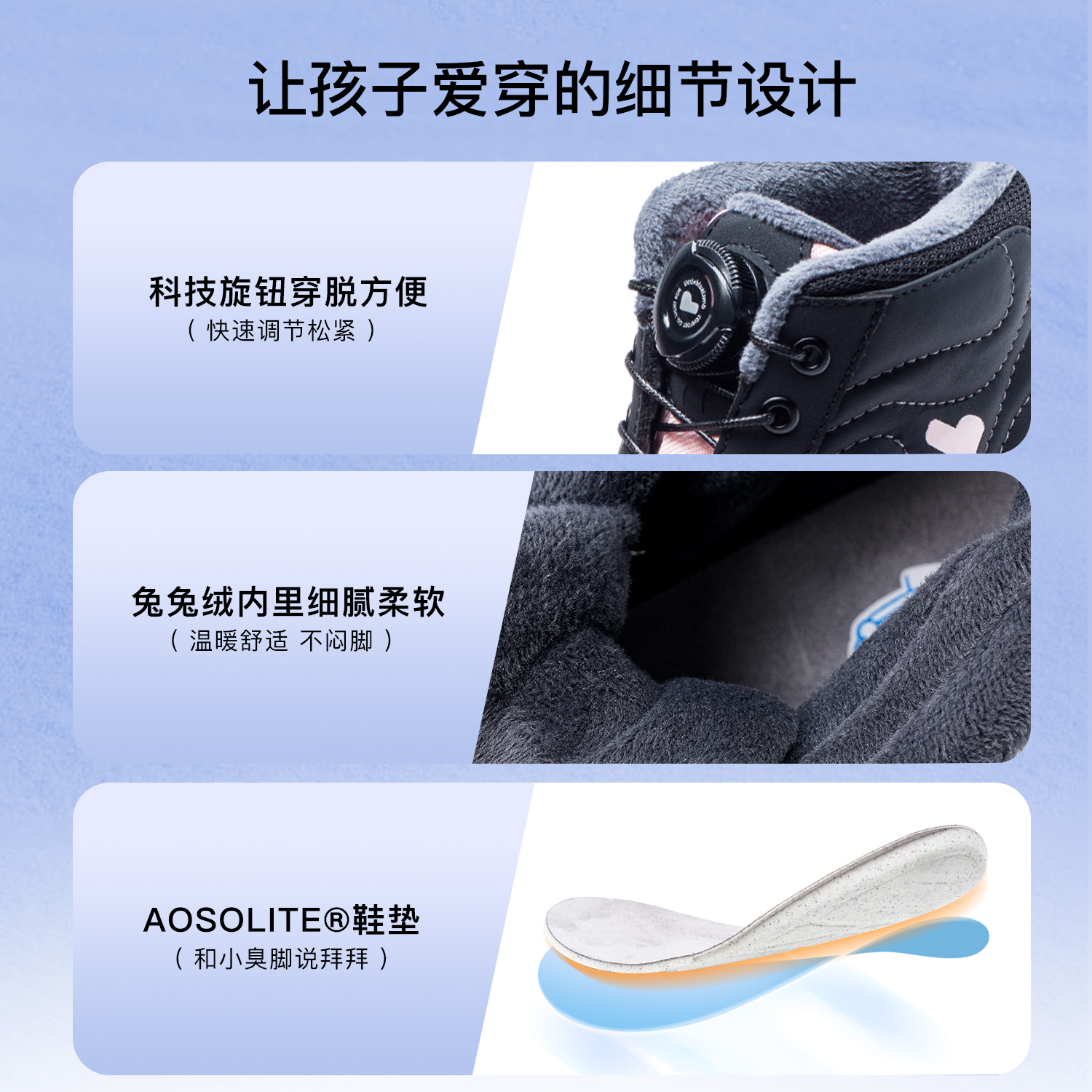小蓝羊2025冬季新品男女童校园防滑加绒运动棉鞋户外保暖靴子麦扑