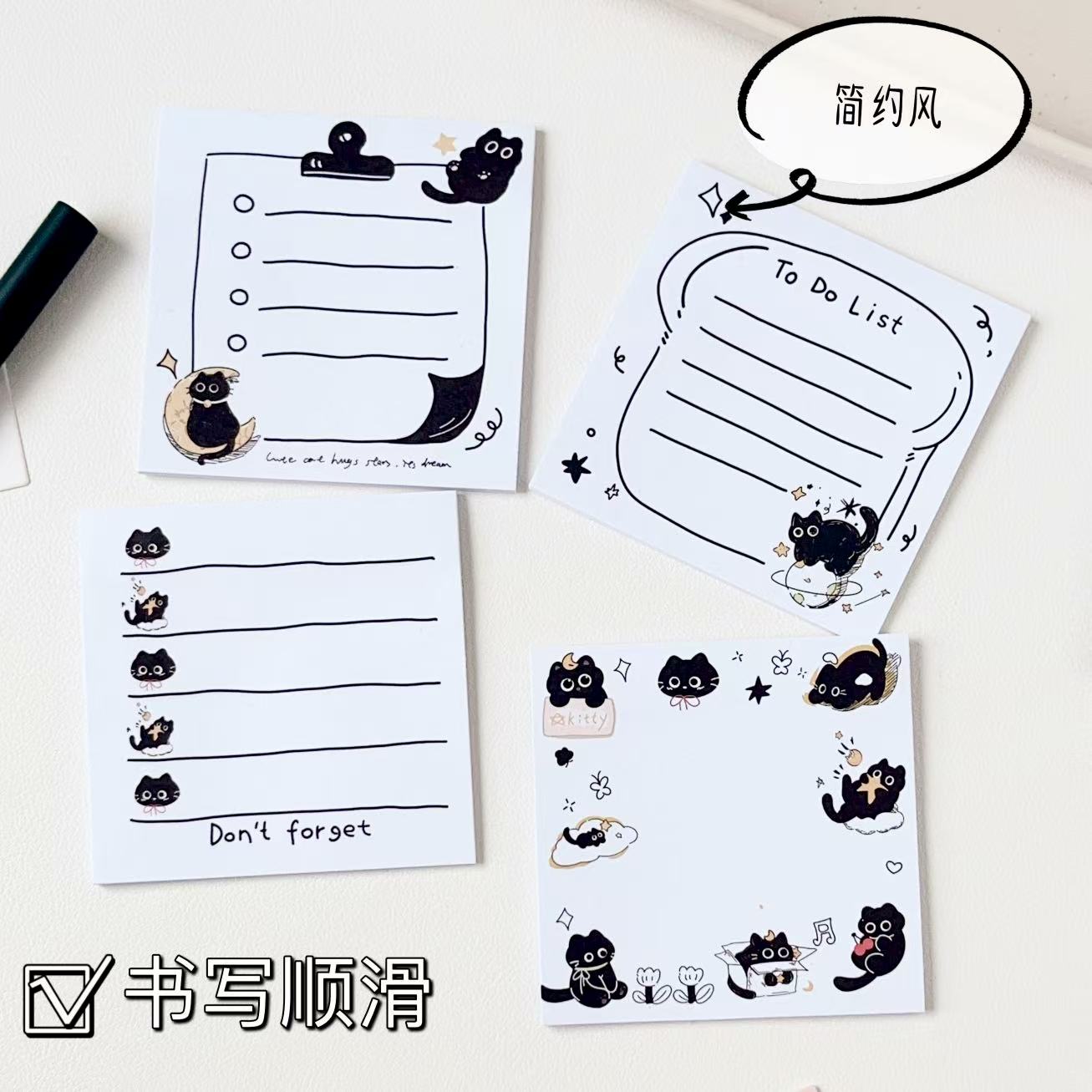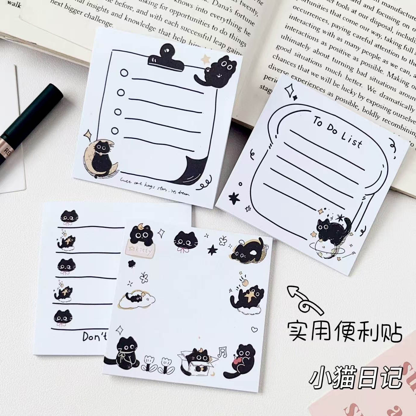 可爱卡通粘性记事黑白留言小猫日记便利贴320张简约可撕便签贴纸