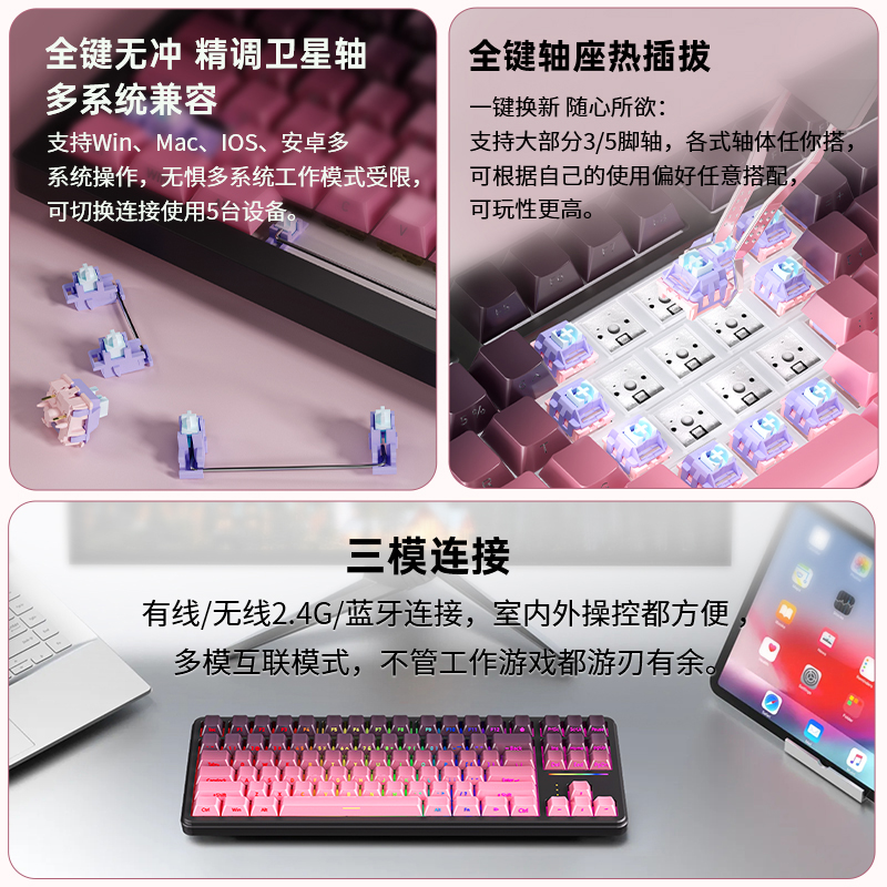 PMO WAVE75铝坨坨机械键盘无线蓝牙快拆客制化电竞游戏办公  WOB RAINY75客制化机械键盘铝坨坨无线蓝牙游戏电竞雨75  Lofree洛斐小顺青春版矮轴机械键盘无线蓝牙办公打字手感好便携轻  SKN青龙三模机械键盘gasket结构客制化无线98热插拔RGB游戏办公  MelGeek小蜜蜂MADE68UItra+磁轴键盘TTC万磁王铝坨坨无畏契约打瓦  狼蛛F2088pro机械键盘有线无线电竞游戏办公台式电脑青茶轴108键  RKR87机械键盘有线电脑办公茶青轴电竞游戏银轴线性轴热插拔白色  狼途T88Pro青提侧刻静音机械键盘客制化三模无线蓝牙办公游戏专用  凌豹K98机械键盘侧刻无线蓝牙三模电竞游戏电脑办公客制化专用  狼蛛S99无线蓝牙键盘机械手感笔记本电脑办公电竞游戏有线F高颜值  前行者TK900机械键盘鼠标套装游戏电竞专用电脑有线无线键鼠男生  WOB Crush80客制化机械键盘铝坨坨有线无线蓝牙电竞游戏办公  VALKYRIE瓦尔基里VK75客制化机械键盘有线蓝牙三模电竞游戏专用  Riccks RS8V2机械键盘无线蓝牙台式电竞游戏电脑办公码字专用87键  狼蛛Hero68he磁轴键盘机械电竞游戏FPS通用RT0.01高性能有线灯箱  艾石头MG68全铝CNC无线磁轴机械键盘电竞专用RT0.001游戏专用键盘
