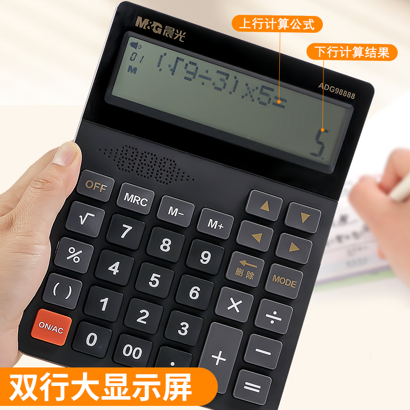 晨光计算器大屏双显真人发音会计财务专用高颜值办公用四则混合运算多功能计算双行双显计算机大按键12位数显