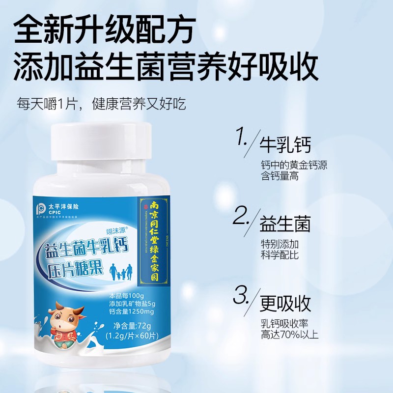 叶黄素维生素益生菌儿童高钙片72g/瓶牛初乳学生中老年钙旗舰店