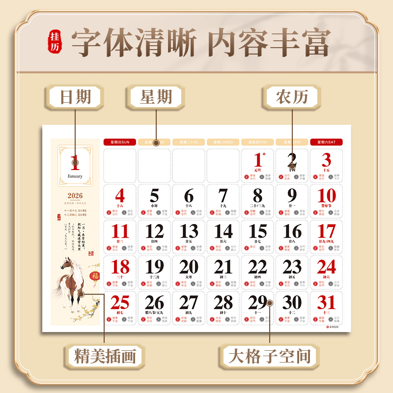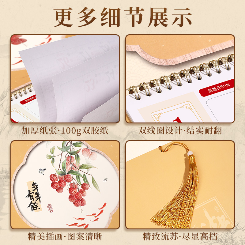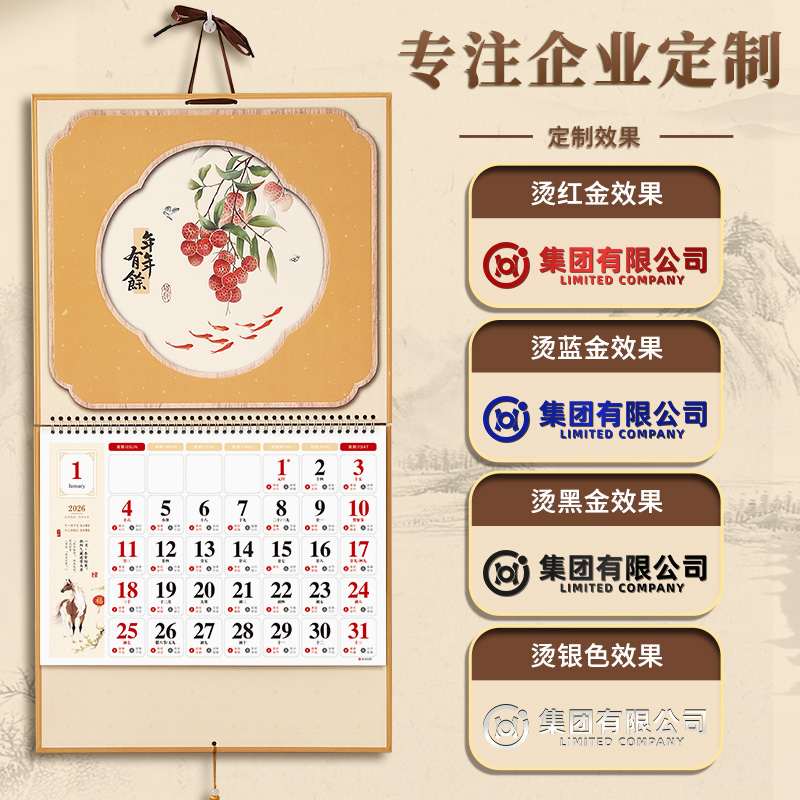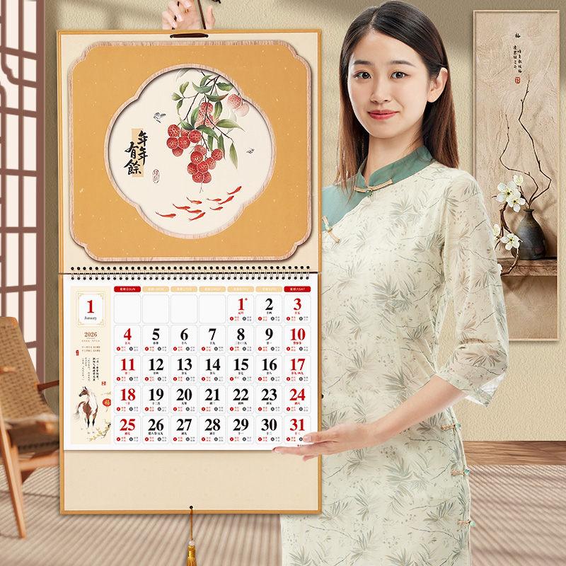 2026年新款挂历中国风福牌立字体清晰内页丰富日历精美插画图案流苏吊坠尽显高档加厚纸张月历可企业定制logo