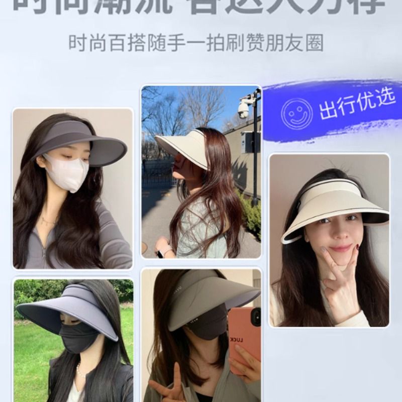 防晒帽女夏季大帽檐空顶遮阳帽骑车防紫外线冰丝太阳帽折叠大檐