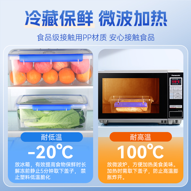 保鲜盒塑料微波加热饭盒带盖上班族便当盒带密封长方形密封盒防潮