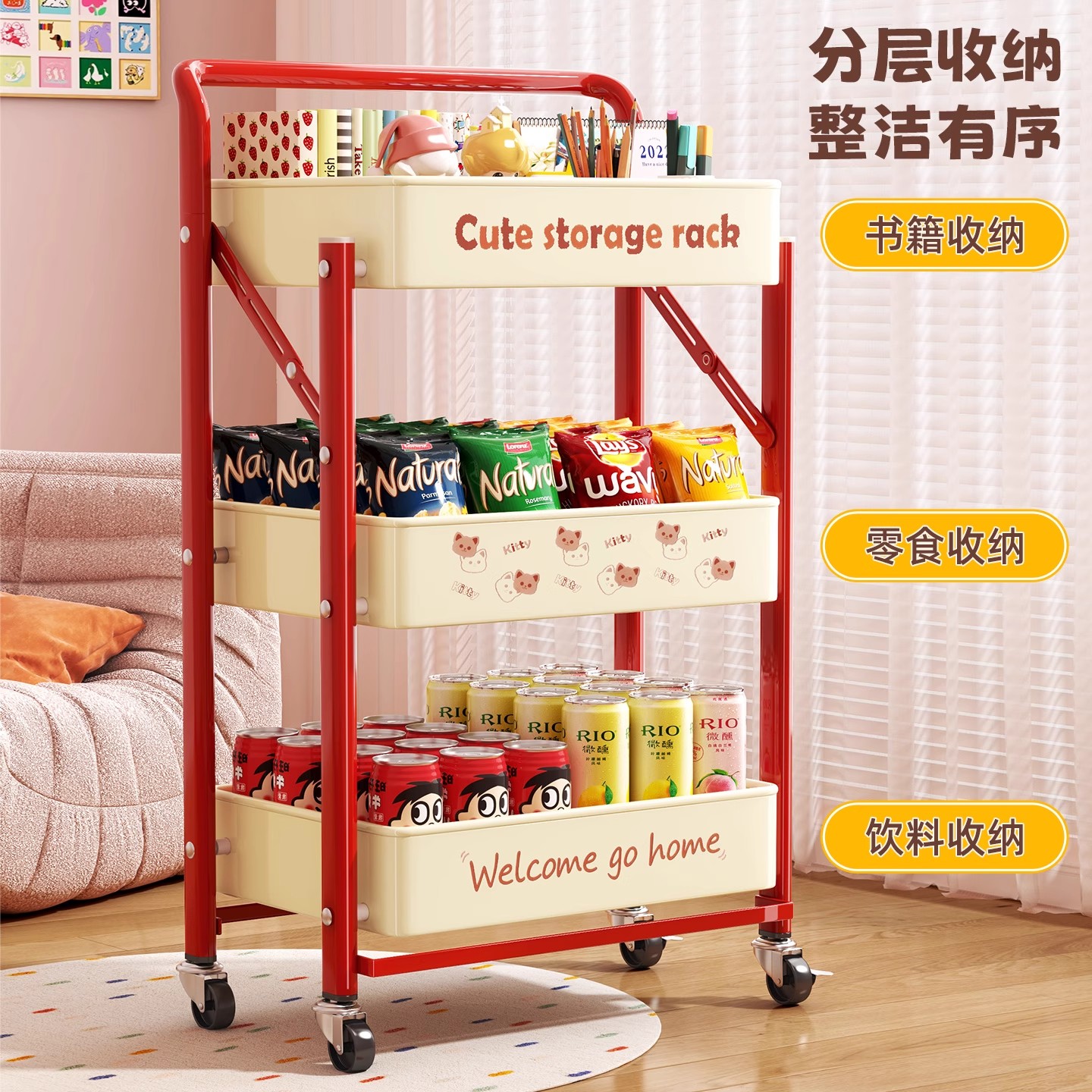 多巴胺家用收纳置物架落地零食小推车书架可折叠厨房卫生间书架子