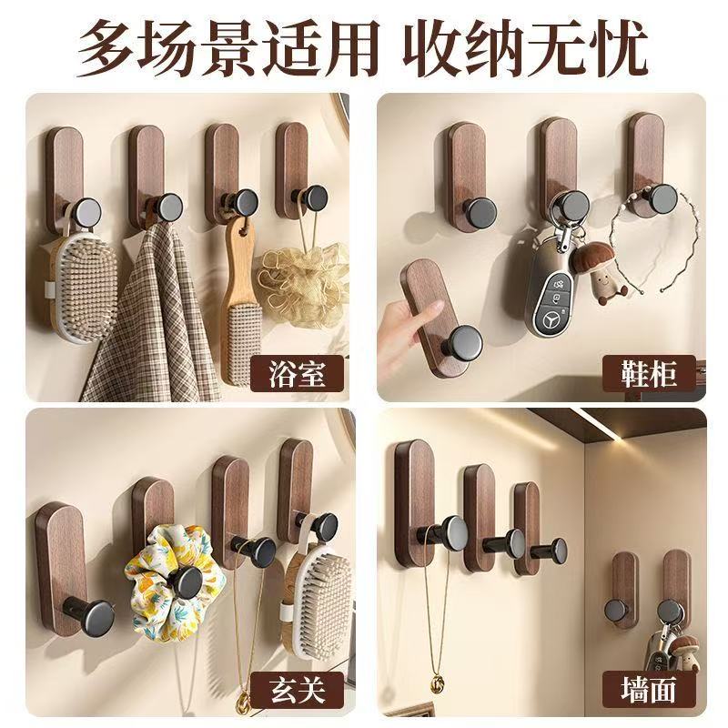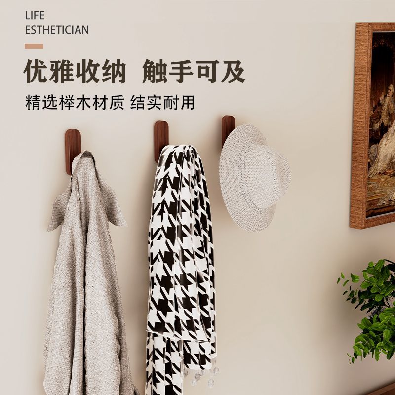 黑胡桃木挂钩强力粘胶免打孔入户门后单钩壁挂玄关衣服帽挂衣钩