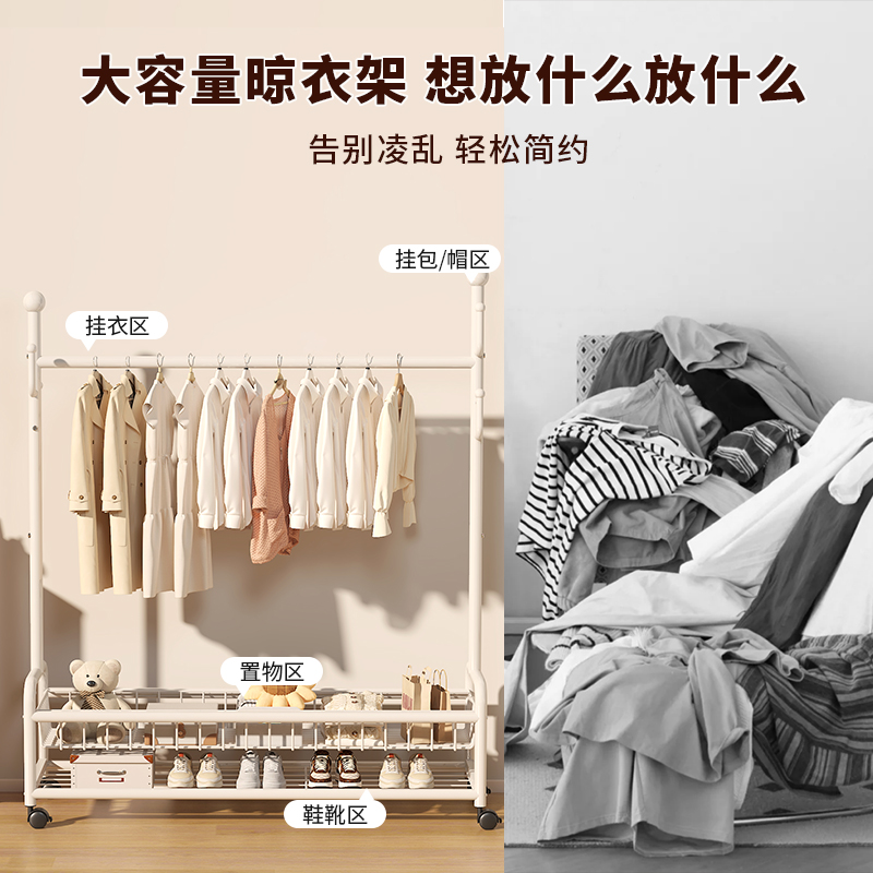 懒角落衣架落地卧室不占空间家用多功能可移动收纳置物架衣服帽架