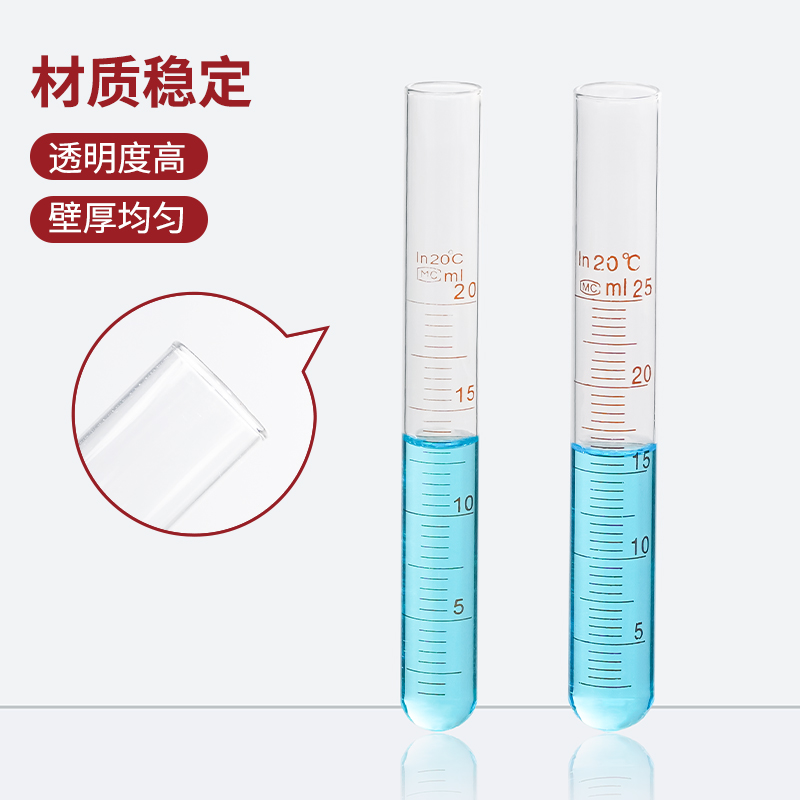 垒固 玻璃刻度试管 圆底平口试管 实验室螺口试管10/15/50/100ml