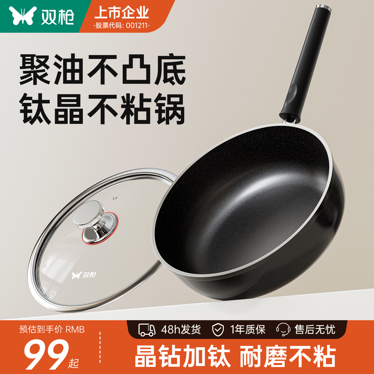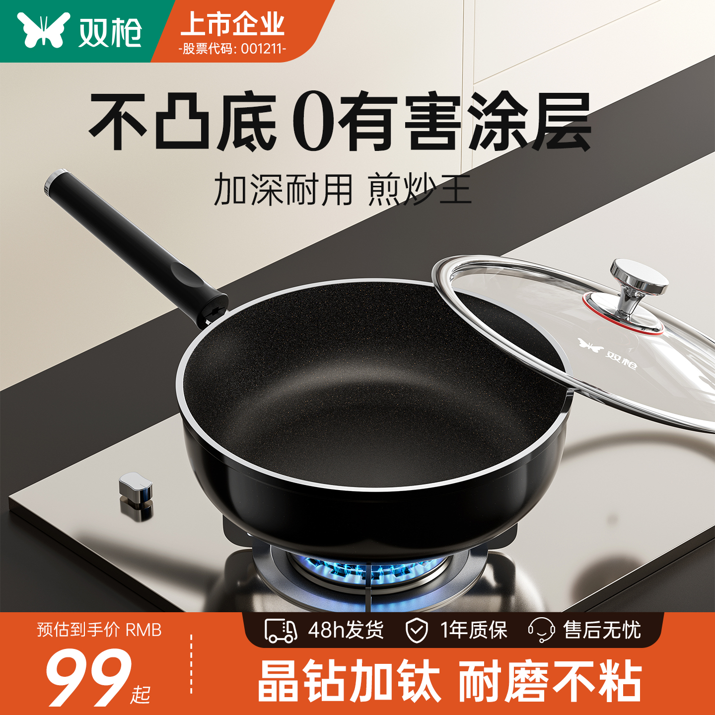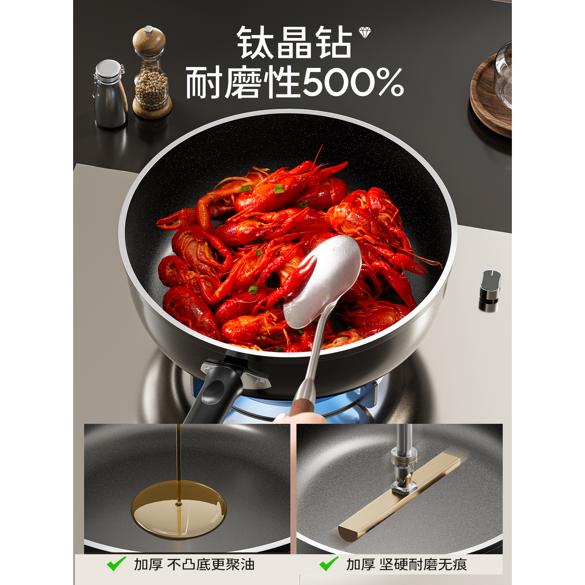 钛无涂层平底锅不粘锅家用牛排电磁炉煤气灶不沾深煎锅专用炒菜锅