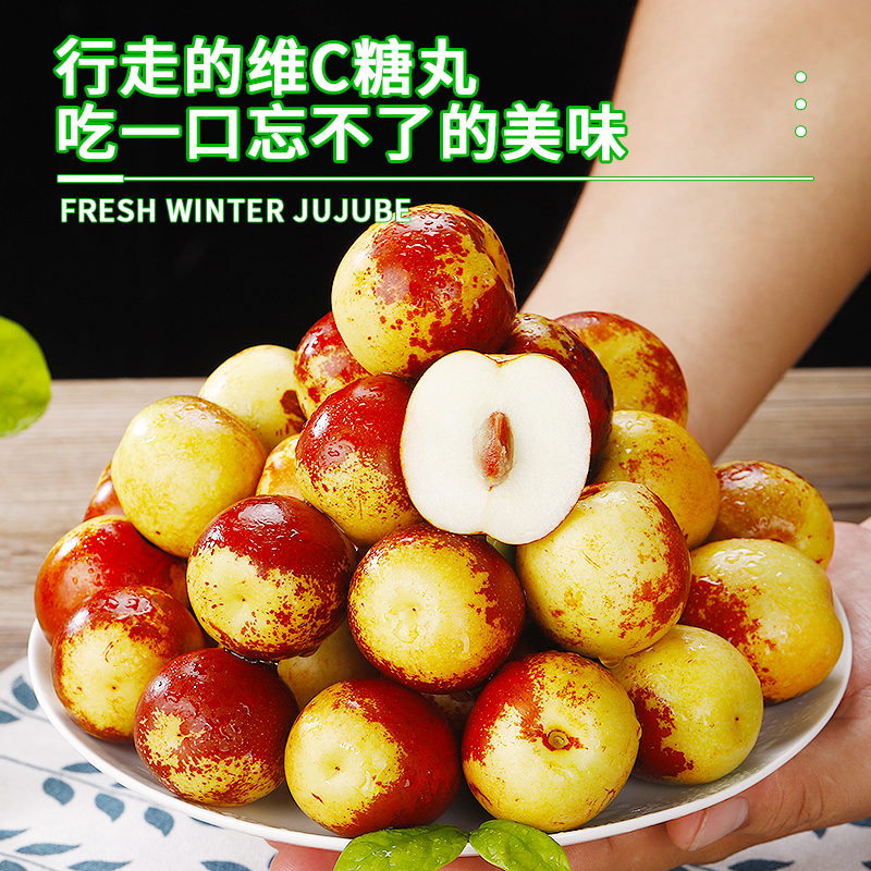 新鲜水果冬枣山东沾化当季整箱5斤现摘现发青枣脆甜多汁枣子新鲜