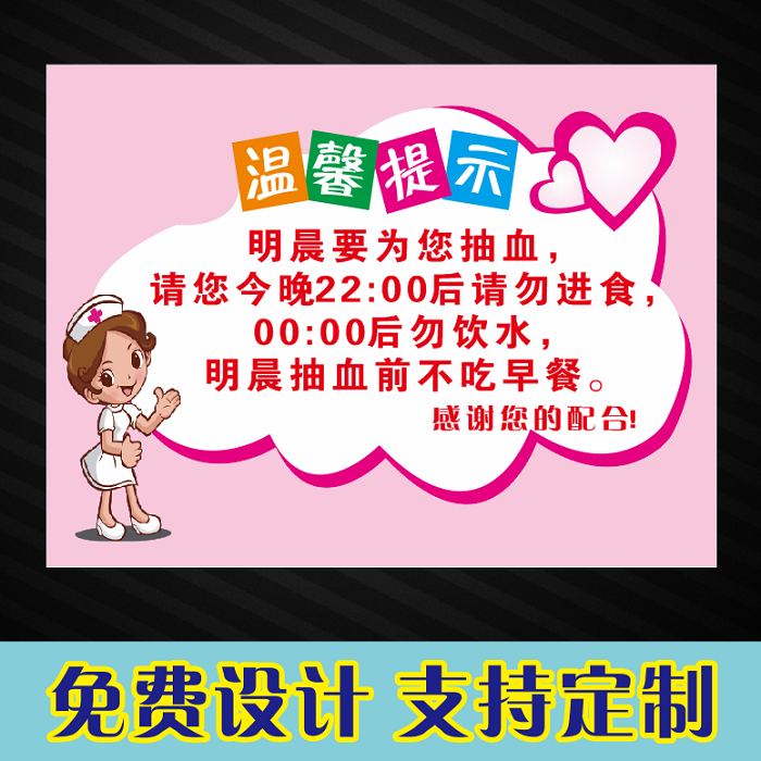 医院门诊术前温馨提示标识牌糖尿病高血压手术前用药禁饮禁食挂牌