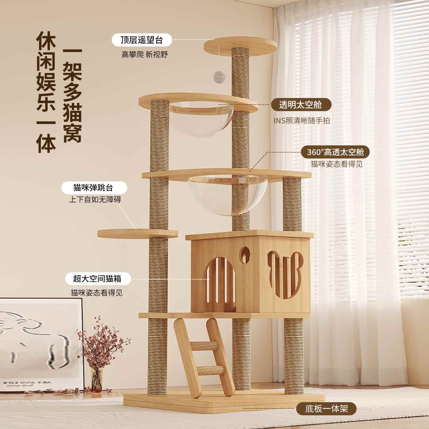 鹏音伴猫爬架家用小户型猫窝猫树一体通天柱猫玩具太空舱不占地黄麻架子摆件饰品