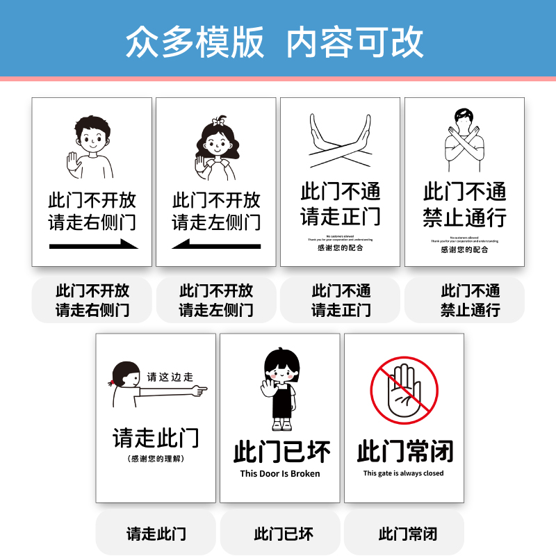 此门不通请走左侧门指示牌请开此门已坏不开常闭请走正门提示牌