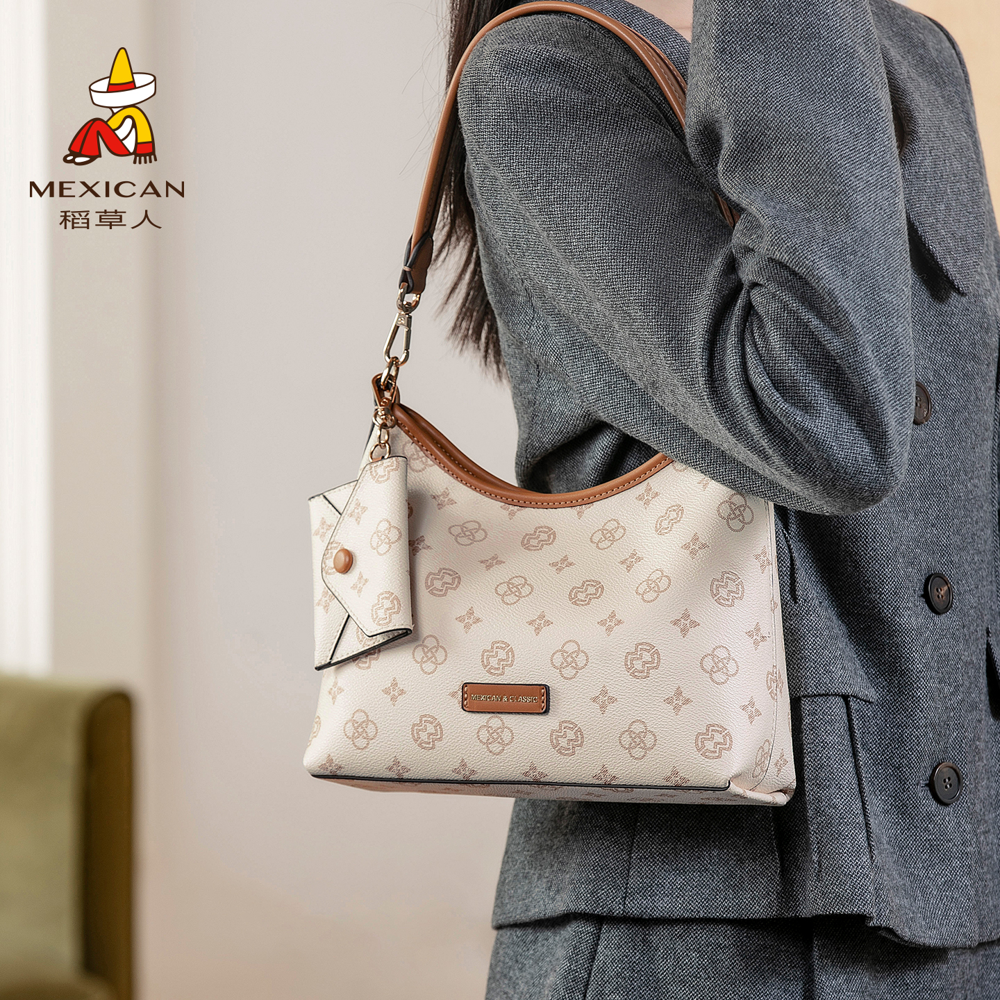 稻草人包包女式新款腋下女印花手提包大容量时尚通勤单肩包斜挎包