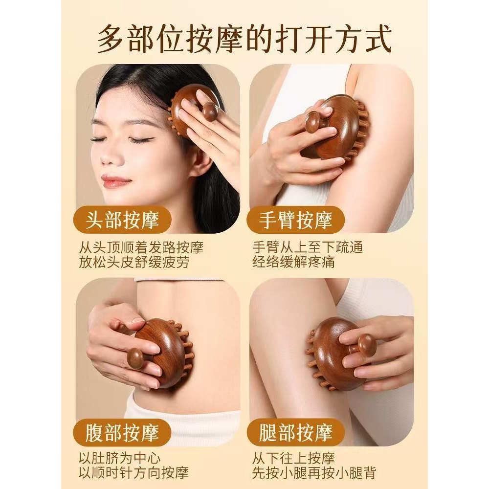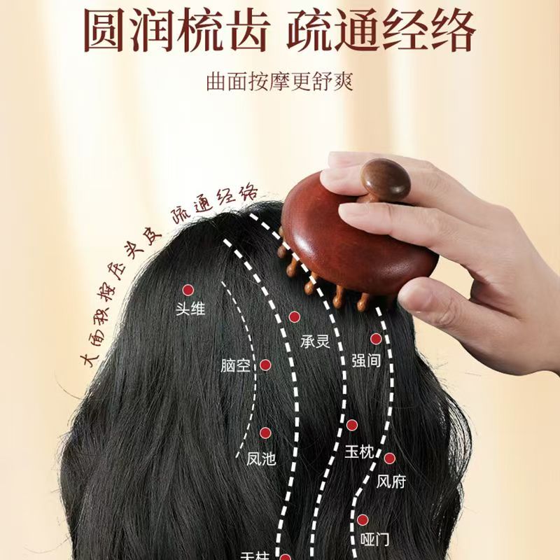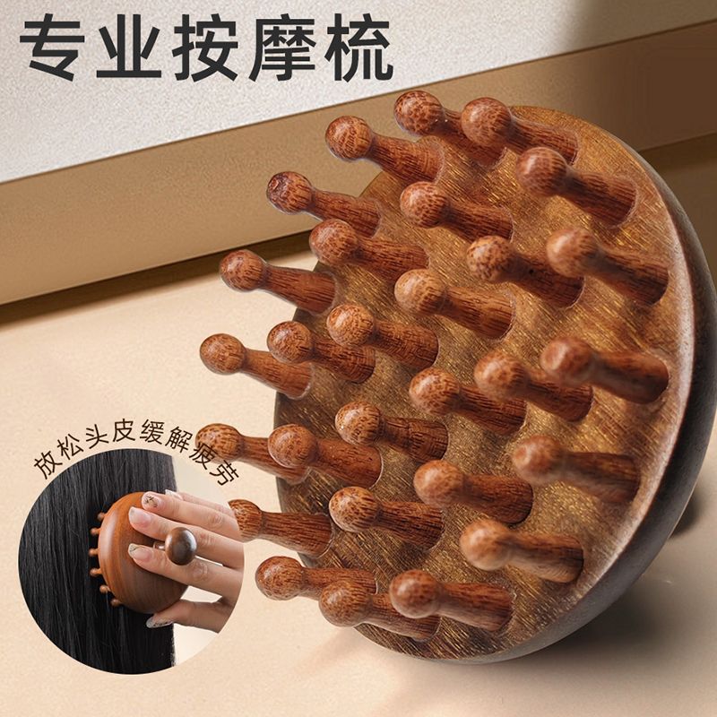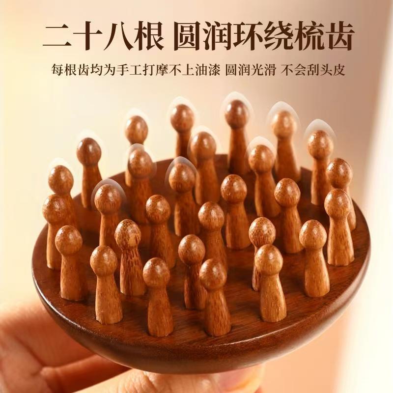 康祝慈檀木圆盘按摩梳头皮经络按摩神器女家用护发保健便携按摩