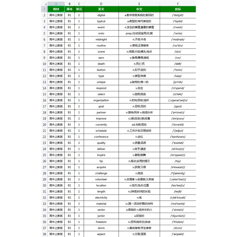 新上海沪教版高中英语单词默写表正乱序选择性必修一二三四电子版
