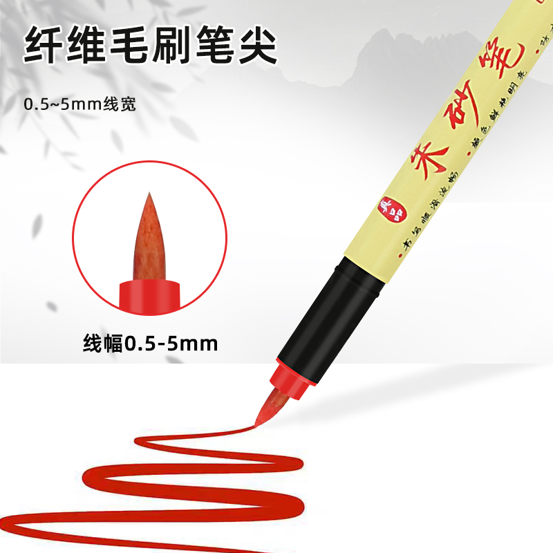 朱砂笔写付专用笔正宗红色朱砂墨专业款写堂单黄纸表文字用的抄经笔喜字画付笔真朱砂液直液式黑纯朱沙小毛笔