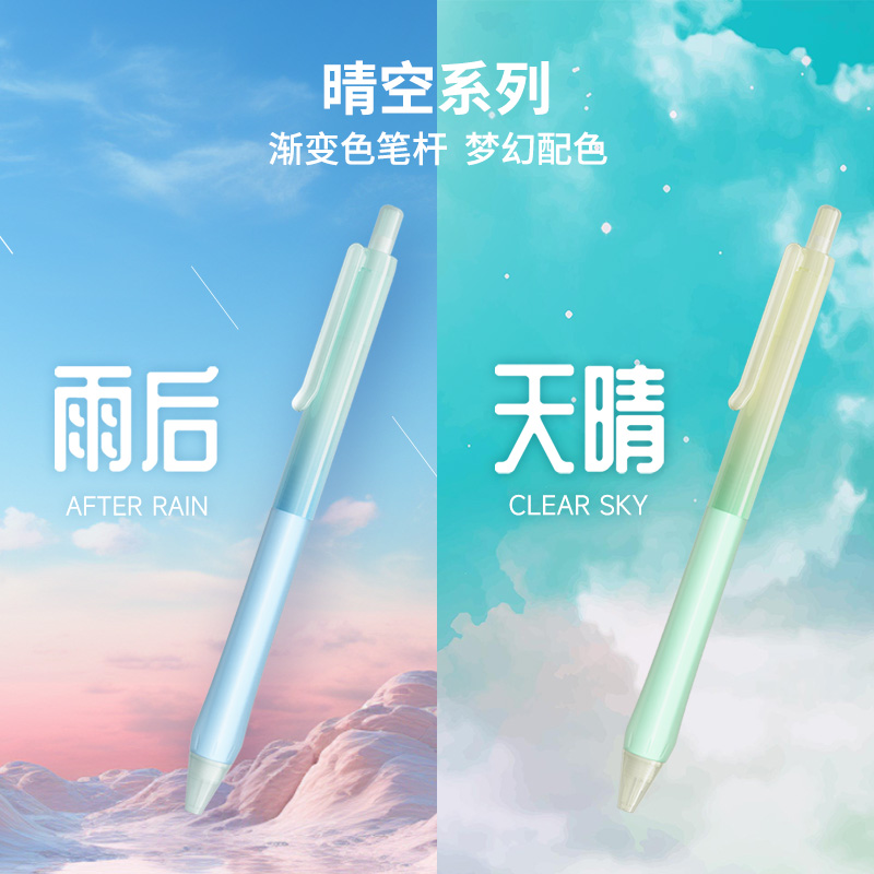 点石制笔新款指尖温柔晴空系列速干按动中性笔针管型0.5mm学生用考试笔水笔芯黑笔刷题速记INS风笔记DS-0183