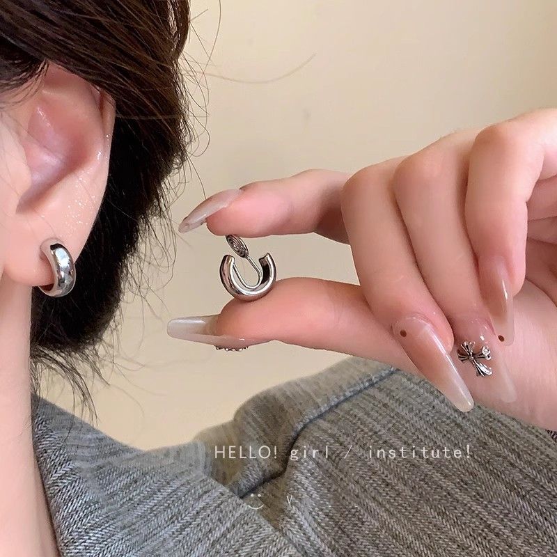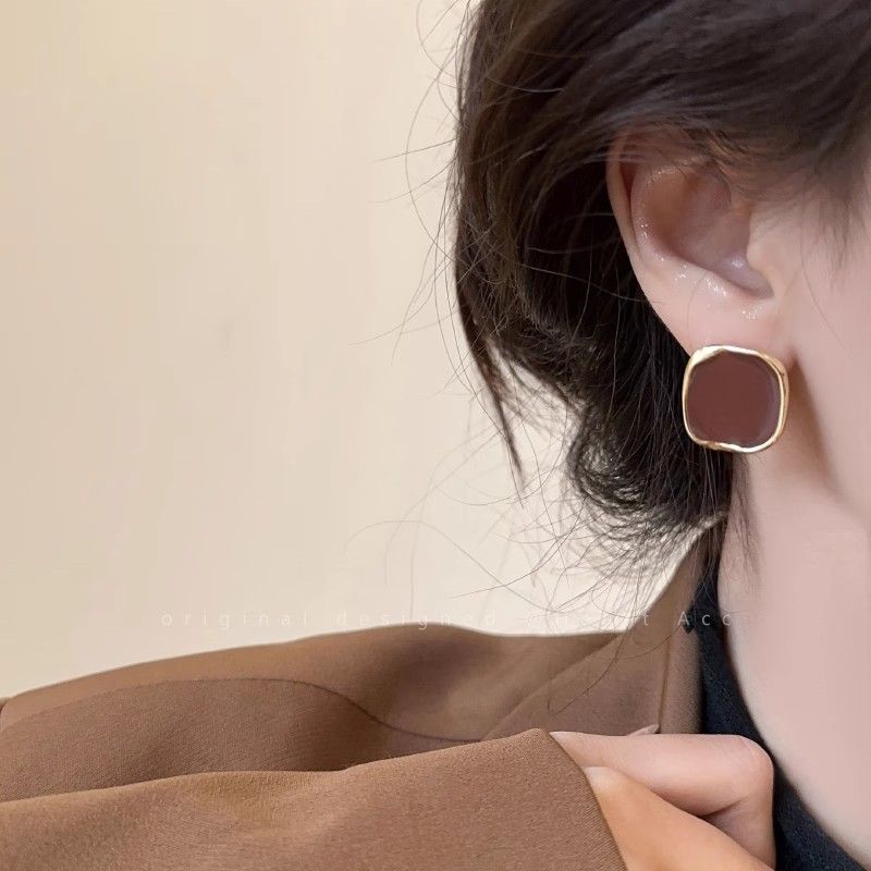 耳夹无耳洞!复古方形滴釉耳环四件套冷淡风高级拉丝耳饰气质轻奢