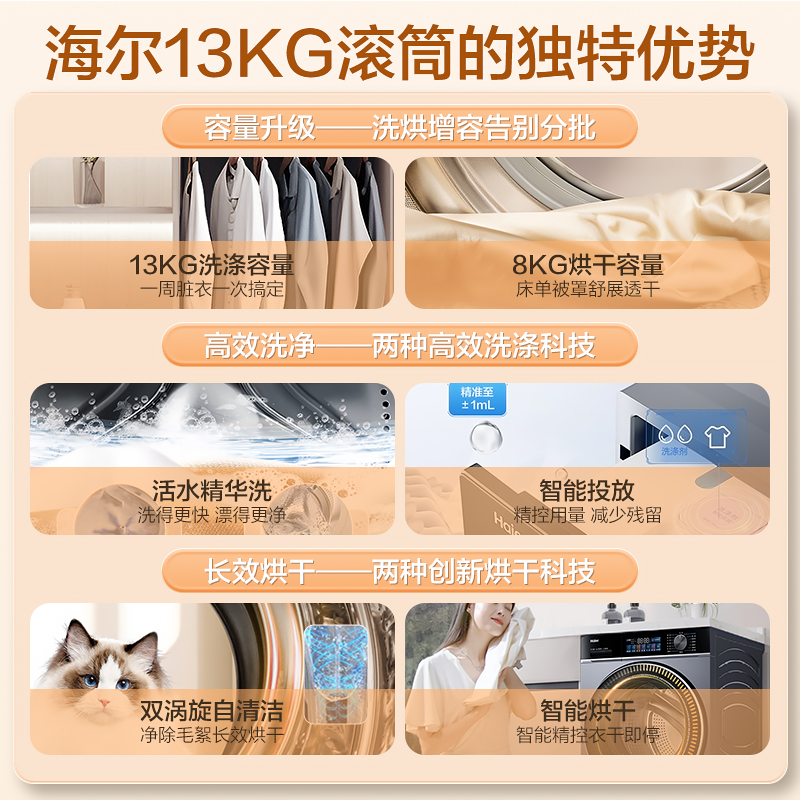 [减20%]海尔13KG洗烘一体大容量全自动精华洗滚筒洗衣机E53E旗舰