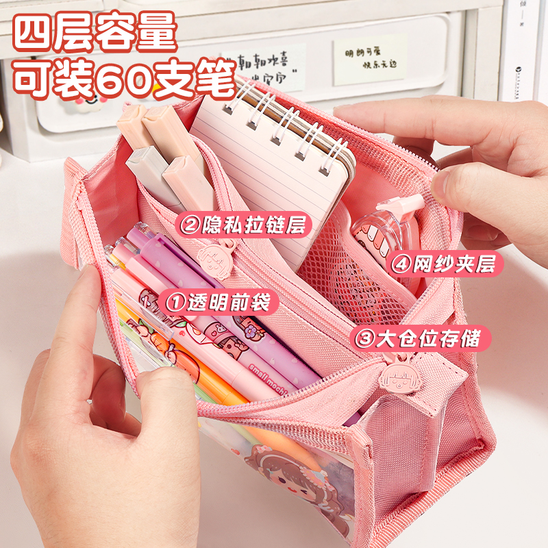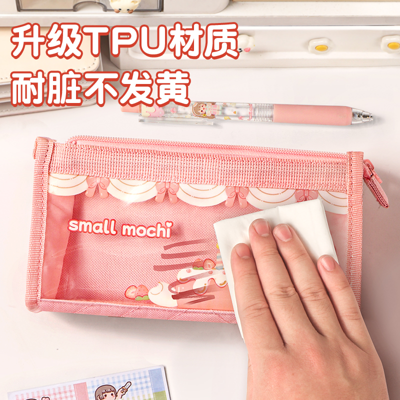 小麻薯笔袋女小学生铅笔盒女孩款大容量三四五年级女童文具盒透明粉色笔袋可爱风高颜值简约耐脏初中女生笔盒