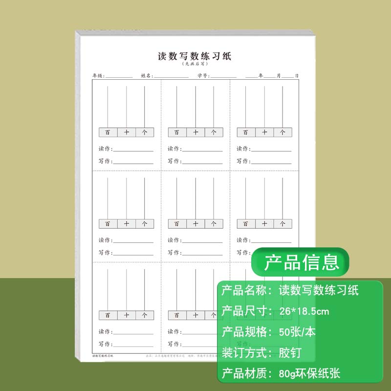 小学生读数写数练习纸无题版1-6年级数学100以内个位十位百位画珠