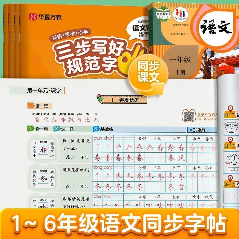华夏万卷字帖三步写好规范字一年级二年级下册同步练三年级上册小学语文英语人教版四五六年级一类字二类字练字帖小学生专用新版