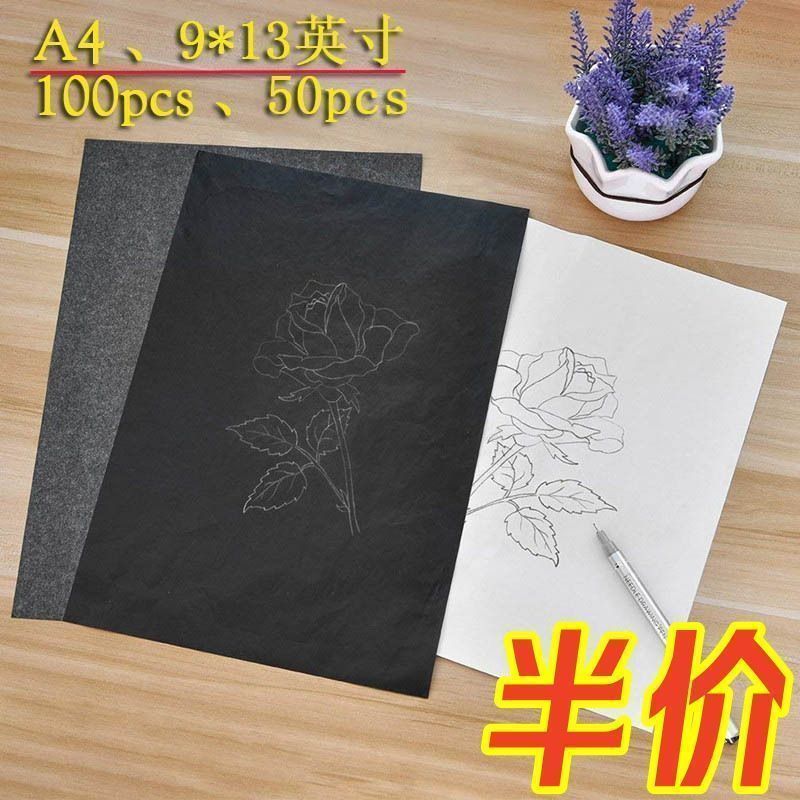 黑色复写纸拓印石墨用A4大张单面8开16K手写不粘复印纸十字绣描画花打样复刻篆刻红色黑色蓝色罚抄纸100张