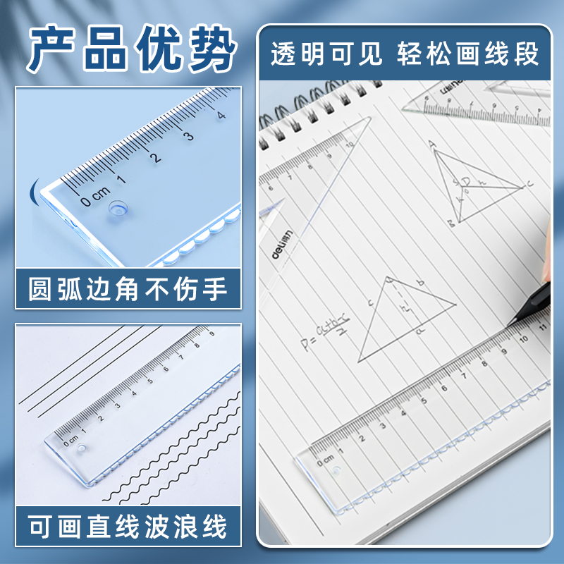 得力软套尺波浪线尺子透明软尺臻清晰柔软可弯曲加厚不怕断安全品质多功能创意绘图中小学生学习美术手工用品