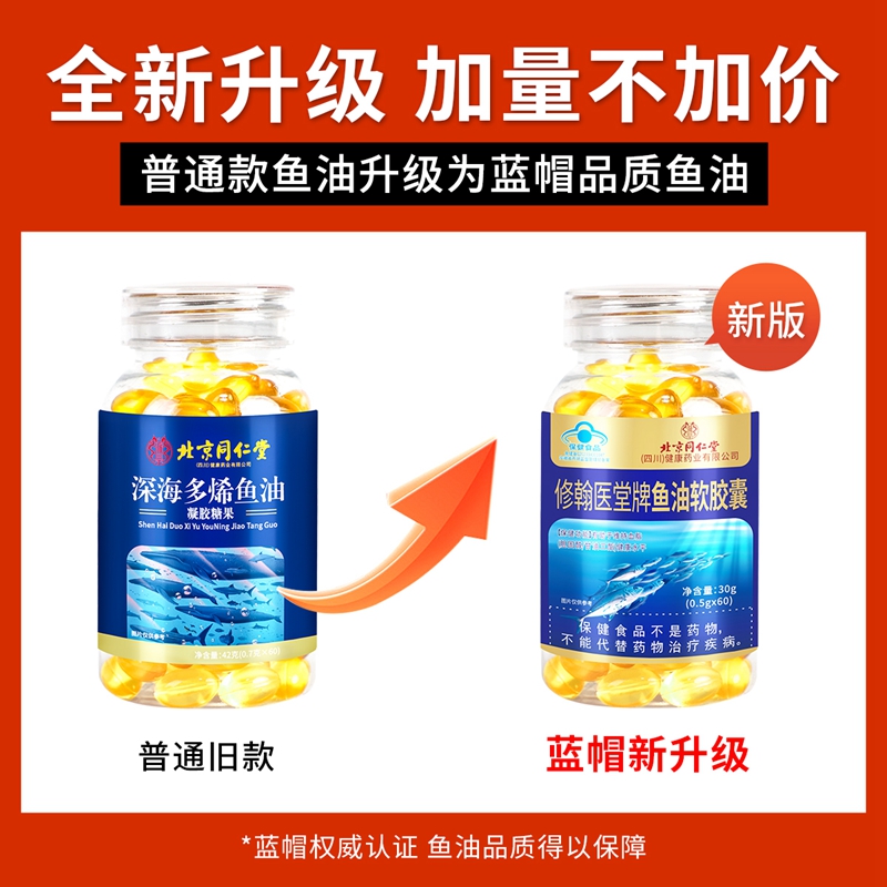 同仁堂鱼油深海鱼软胶囊omega3中老年女生人用官方旗舰店正品血管