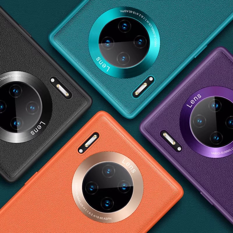 适用于华为Mate30手机壳Mate40pro保护套5g素皮潮男全包+合金镜圈硅胶软壳防摔mate50e商务60/70男女款30epro
