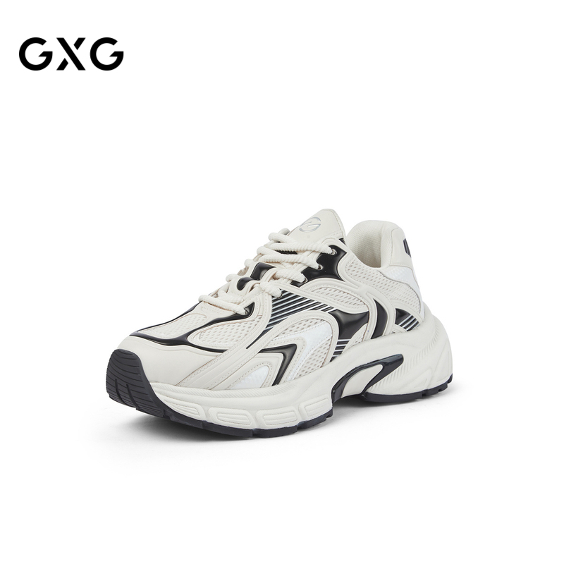 GXG通勤男鞋厚底增高机能潮鞋黑色拼接通勤透气网面跑步鞋老爹鞋
