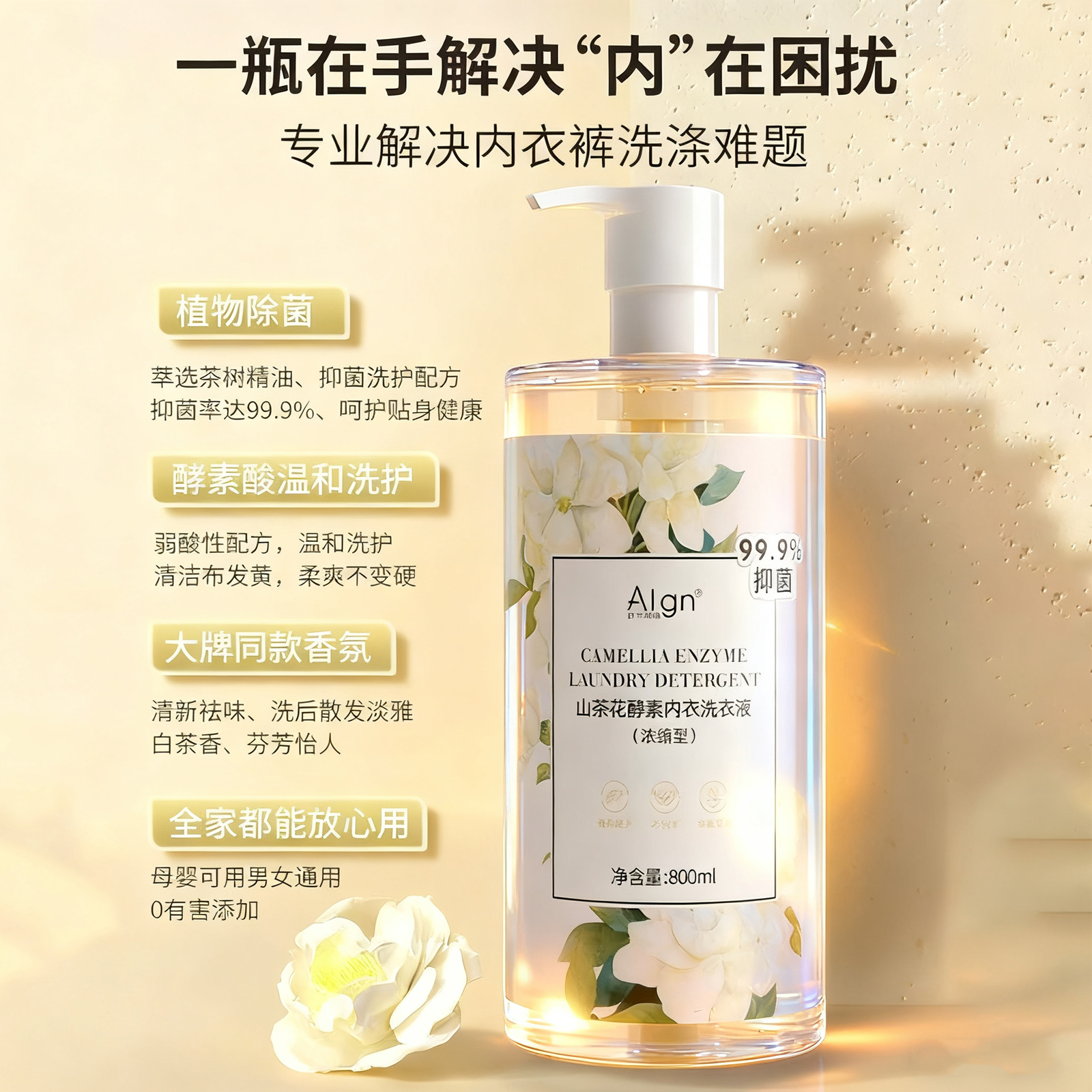 植护内衣洗衣液800g山茶花除菌除螨抑菌去血渍去黄专洗内裤清洗剂