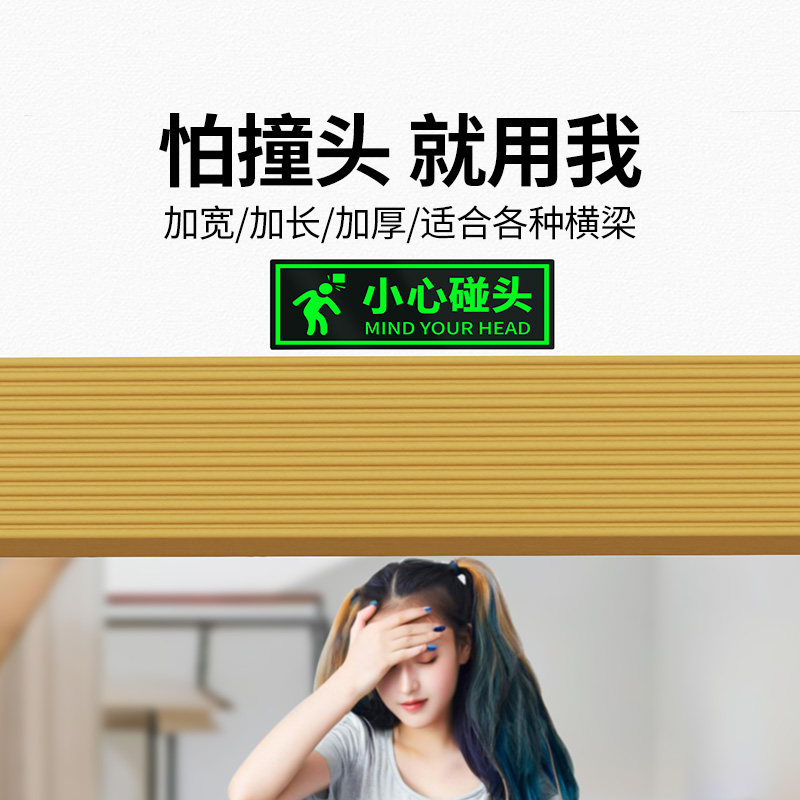 小心碰头防撞条当心碰头提醒避免碰头地槽柔软包贴纸加厚横梁防撞头楼梯防碰头墙贴防撞条墙面海绵包边防撞贴