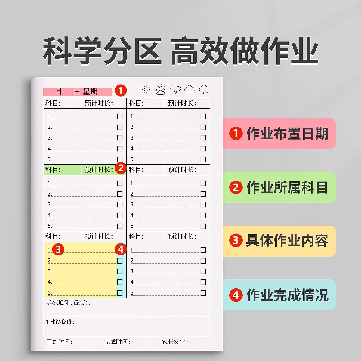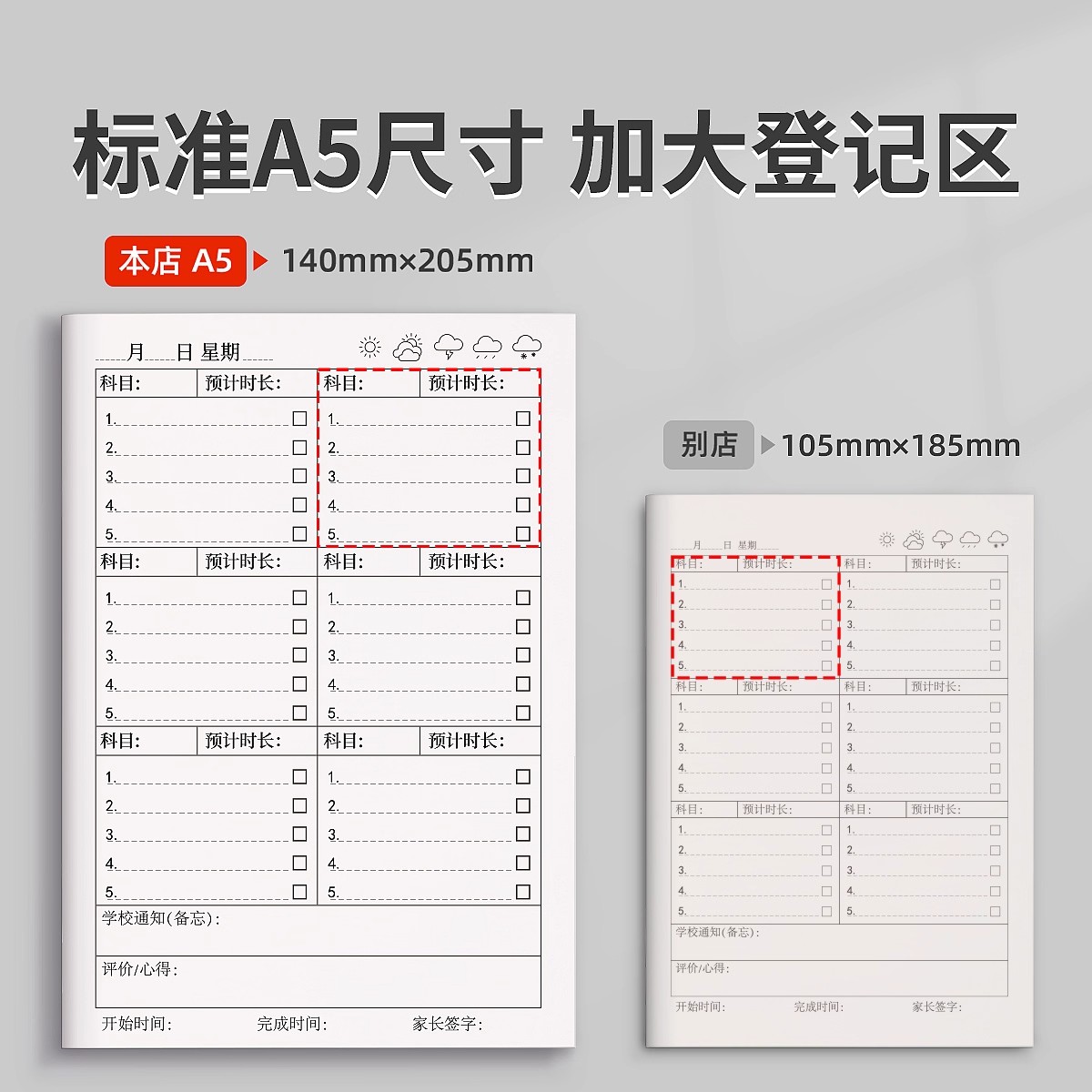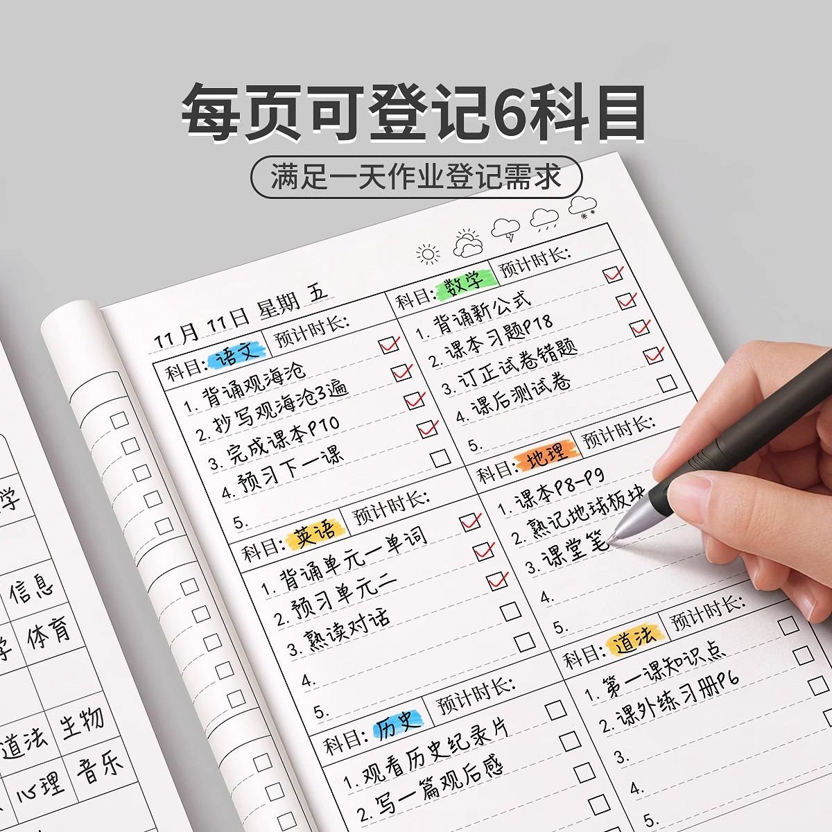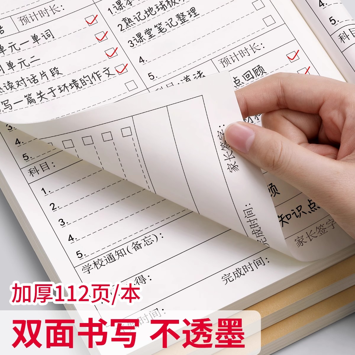 加厚初中生专用作业登记本作业完成登记表高颜值记录家校联系本七年级家庭记作业小学生初一每日学习计划打卡