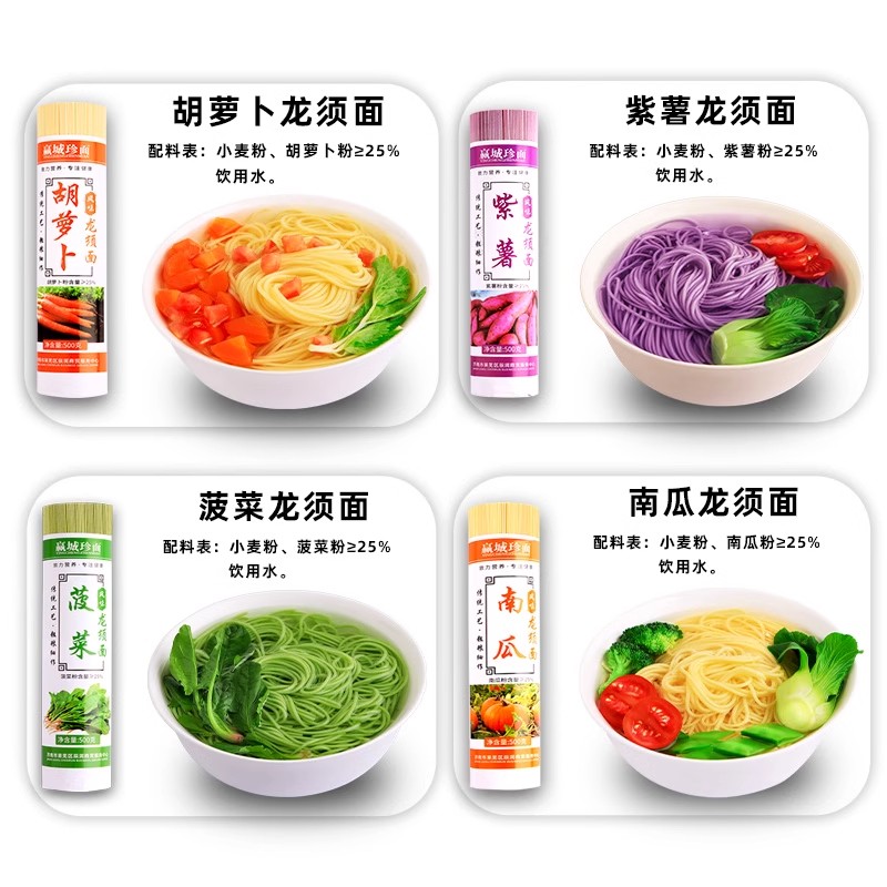 亏本冲量低脂蔬菜面低脂荞麦面龙须面菠菜面五彩早餐粗杂粮挂面条