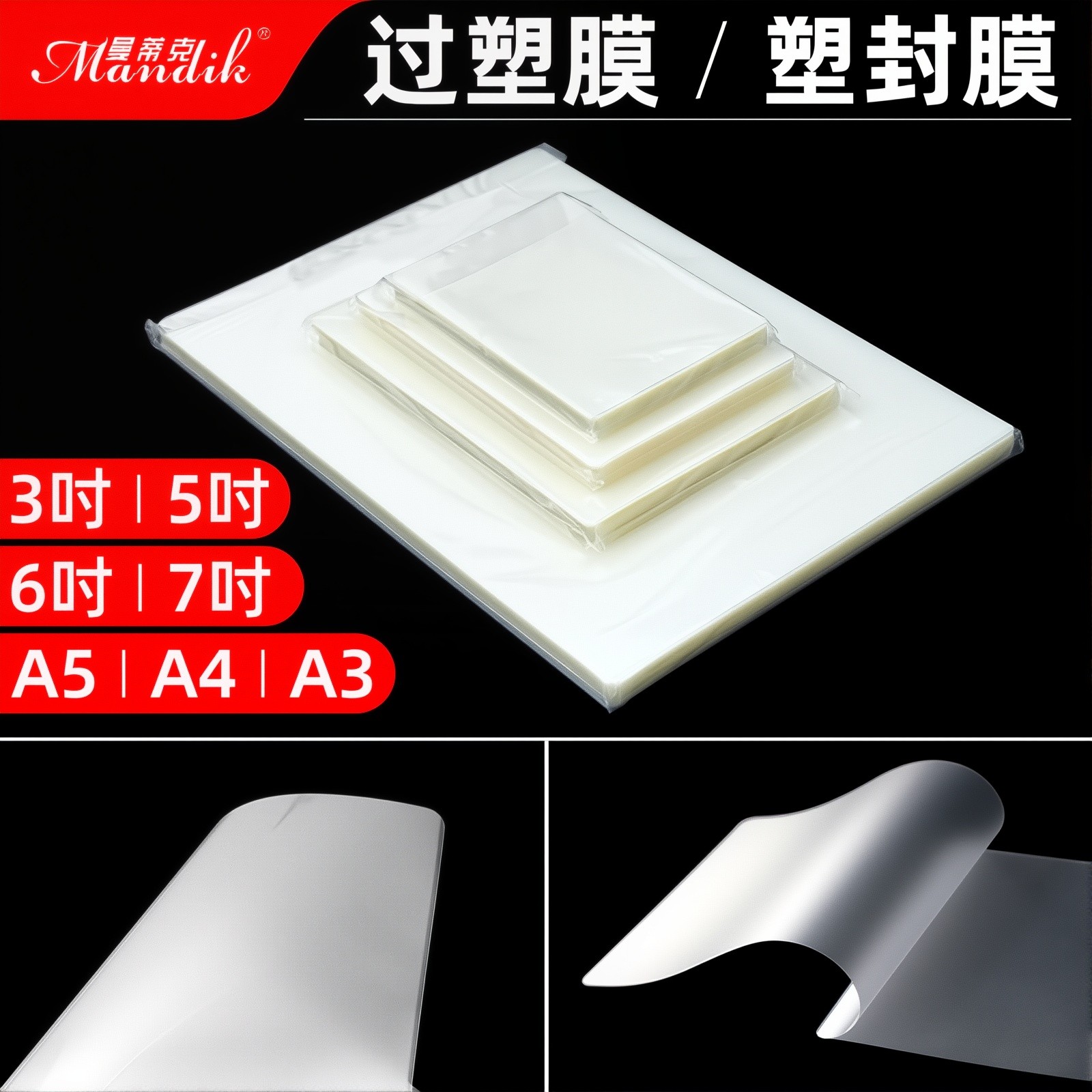 塑封膜透明a4过塑膜6寸5寸7寸3寸A6照片证件塑封文件保护膜7C6丝8C过胶纸膜护卡膜A4塑封纸A3过塑膜自封100张